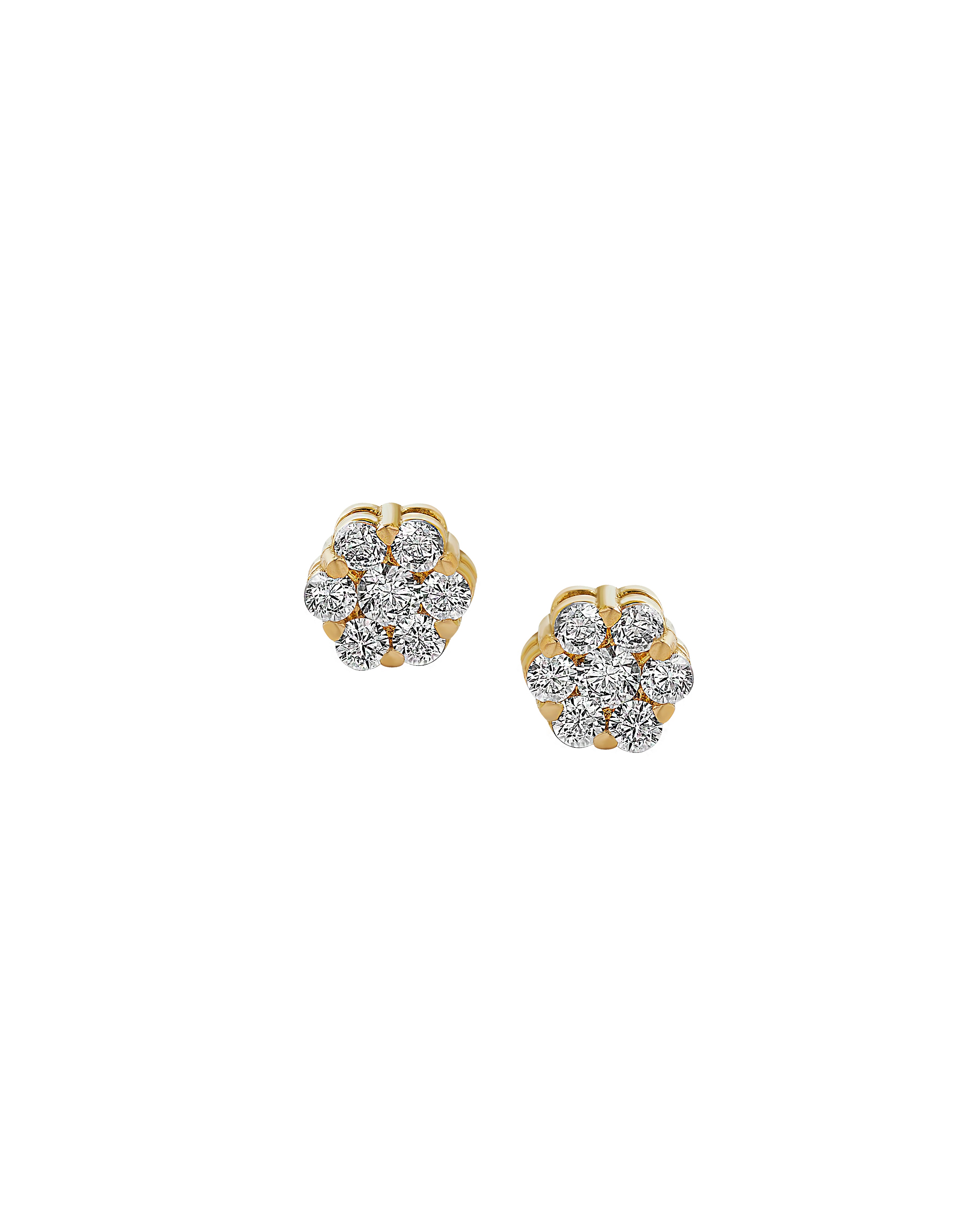 Náušnice Aura z 18k zlata využívají illusion styl – drobné kamínky z kubické zirkonie jsou uspořádané tak, aby na uchu působily jako jeden větší kámen.