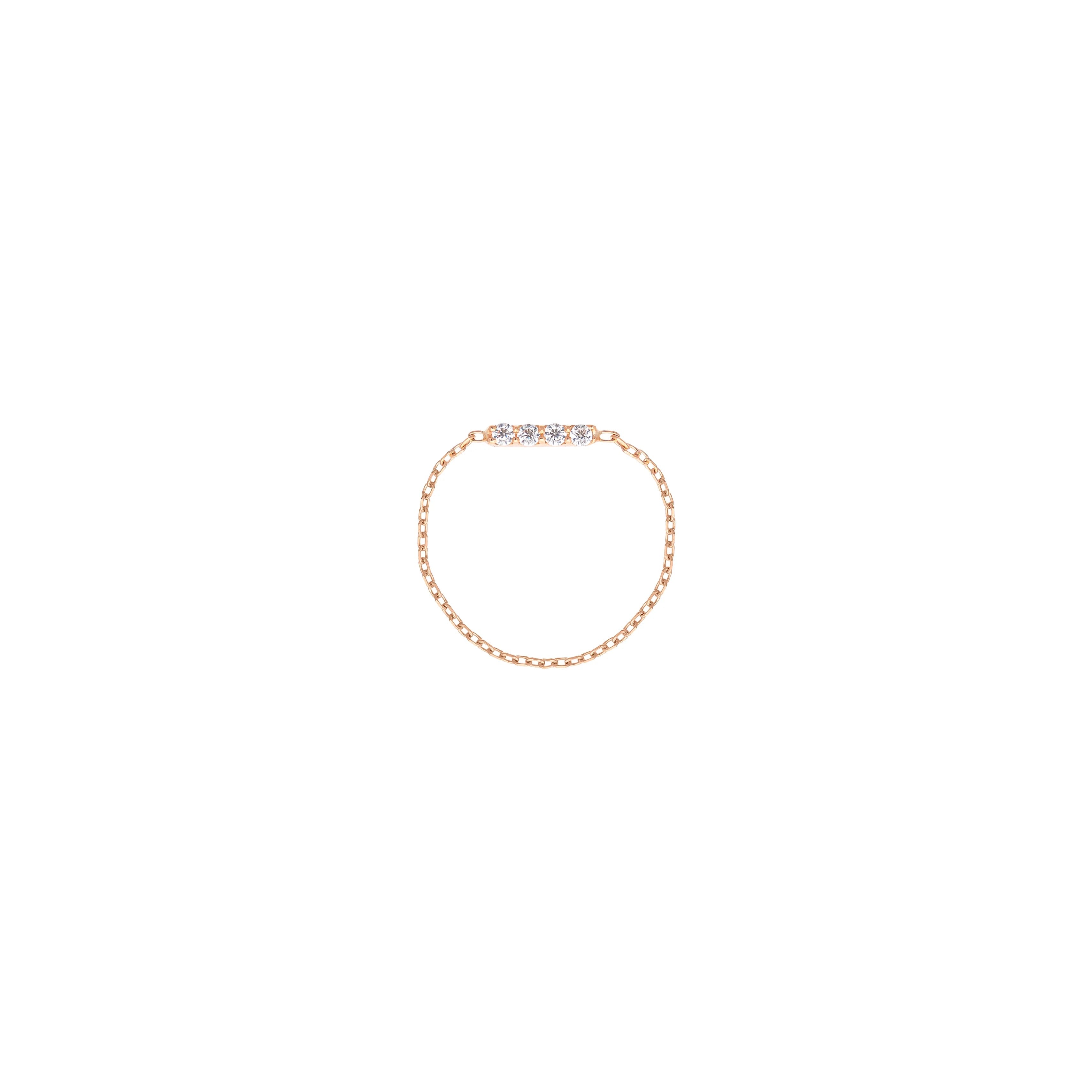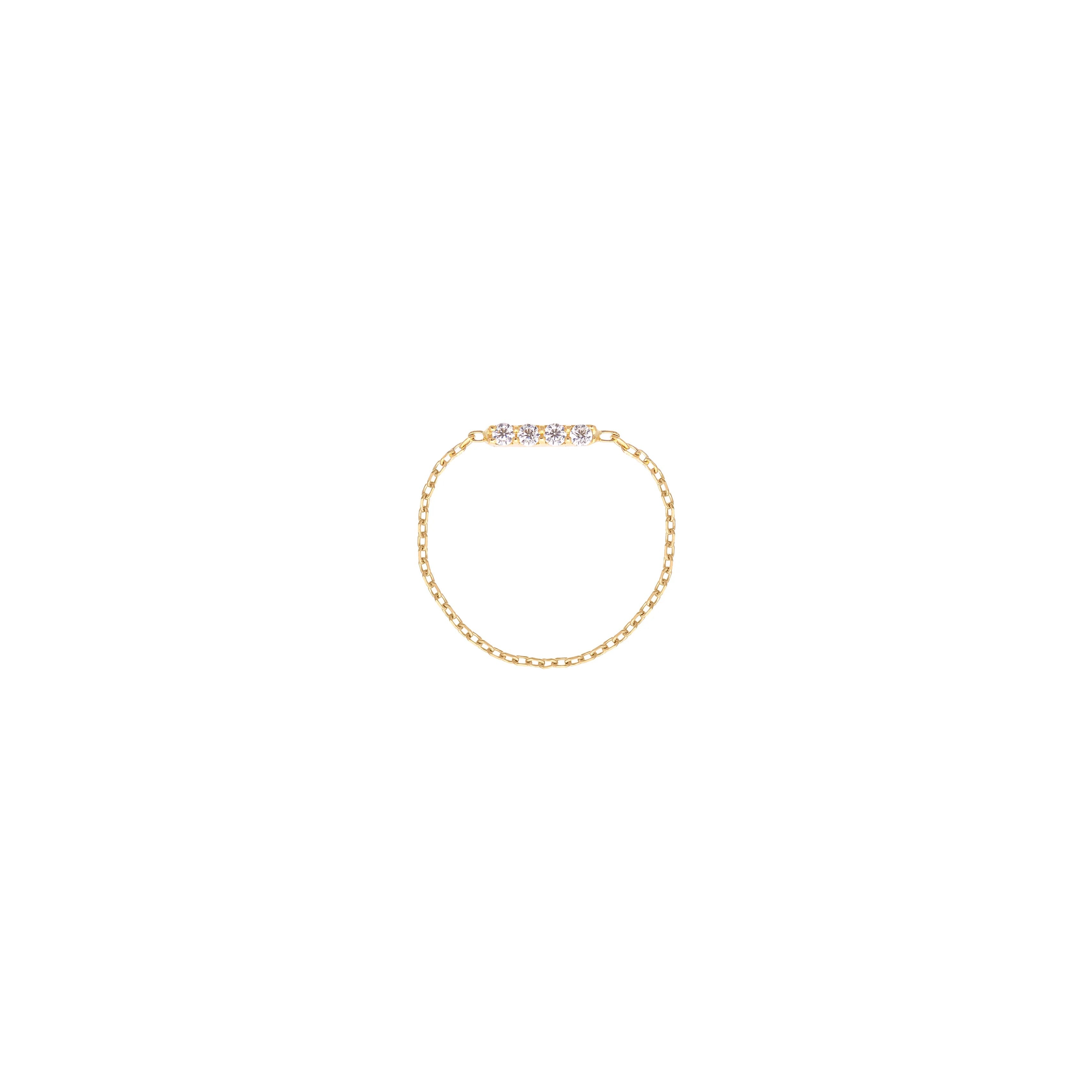 Prsten Bar Chain Diamantový z 18k zlata spojuje éterickou jemnost řetízkové obroučky s třpytem tří drobných diamantů v minimalistickém bar osazení.