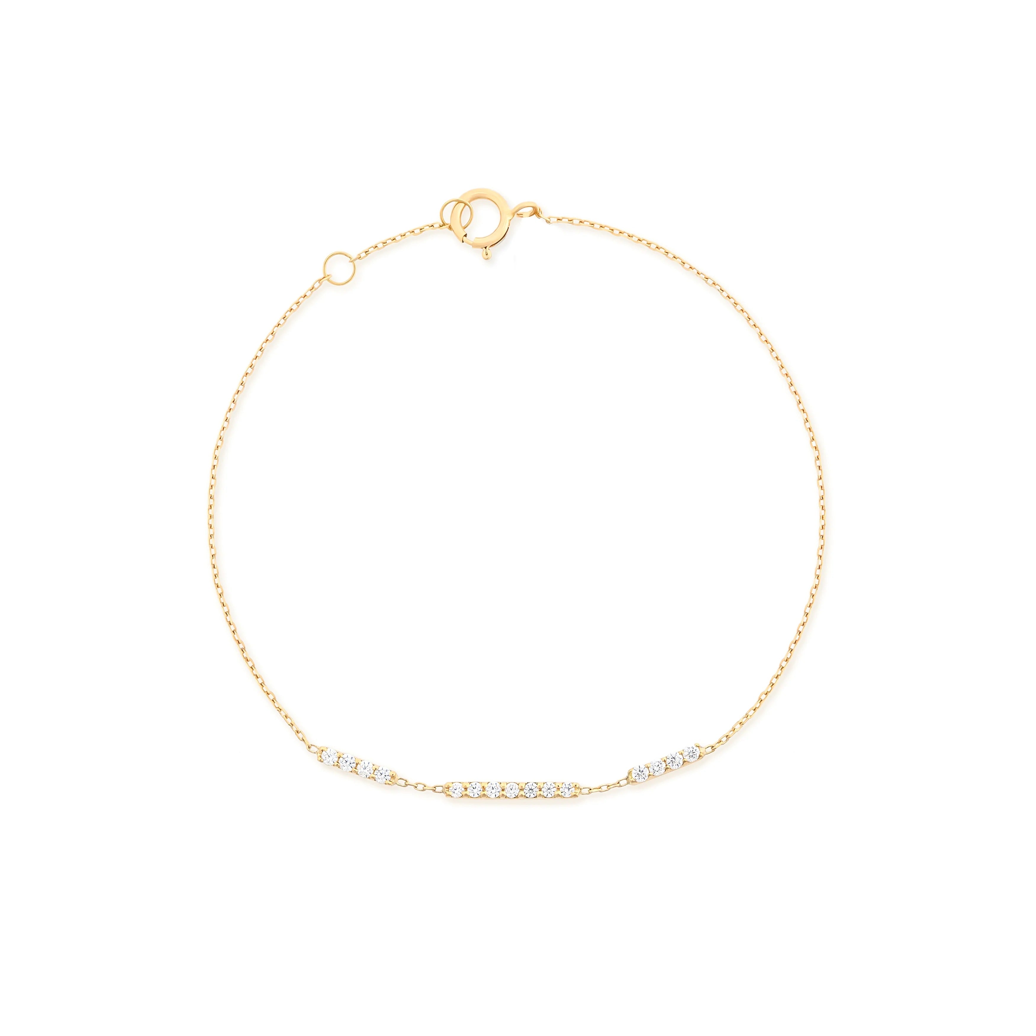 Náramek Three Bars z 18k zlata tvoří tři jemné linie osazené přírodními diamanty. Působí čistě a nenápadně, dobře se kombinuje s dalšími tenkými náramky.