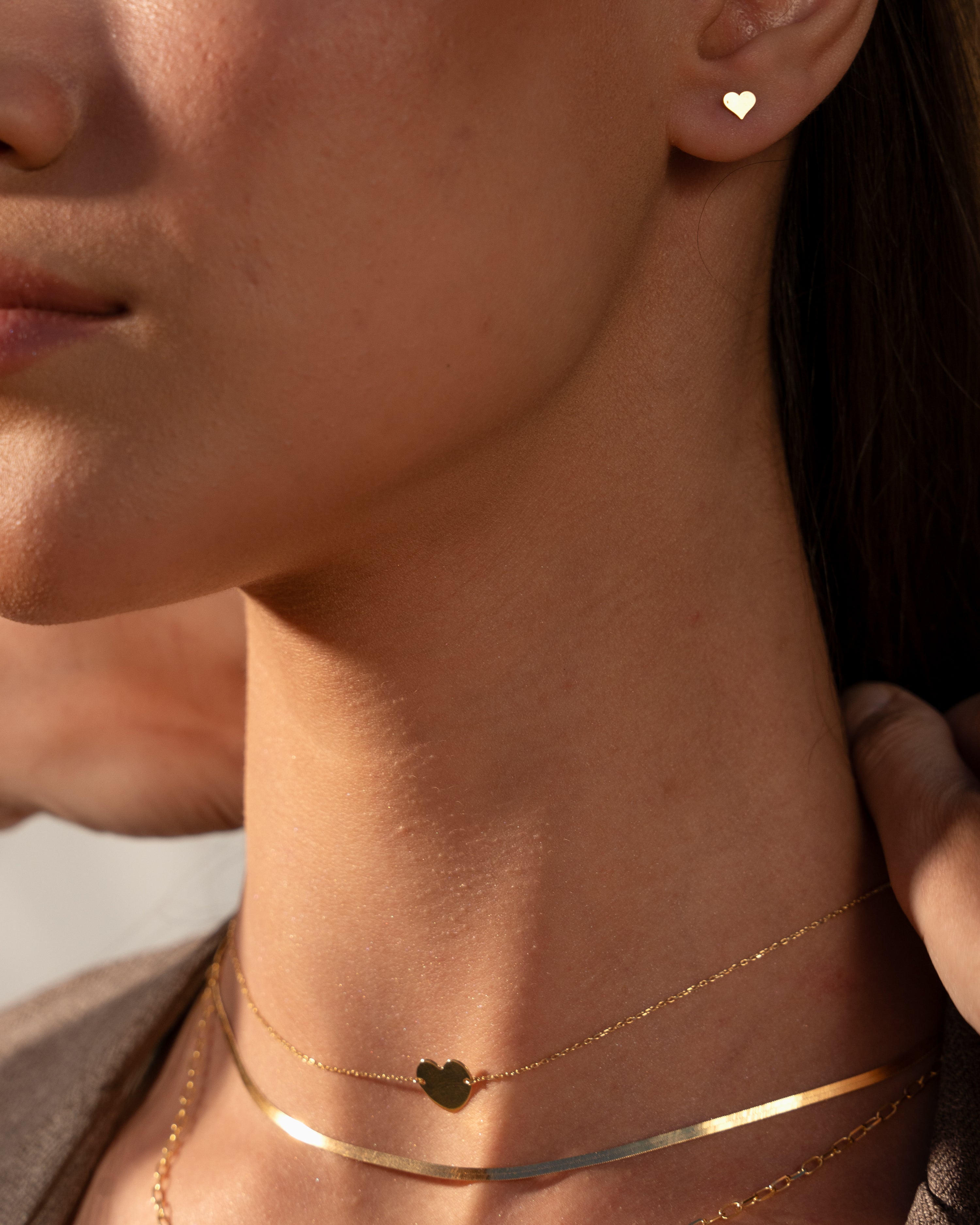 Krátký náhrdelník Cœur zvýrazní linii klíčních kostí a působí, jako by k tělu přirozeně patřil.